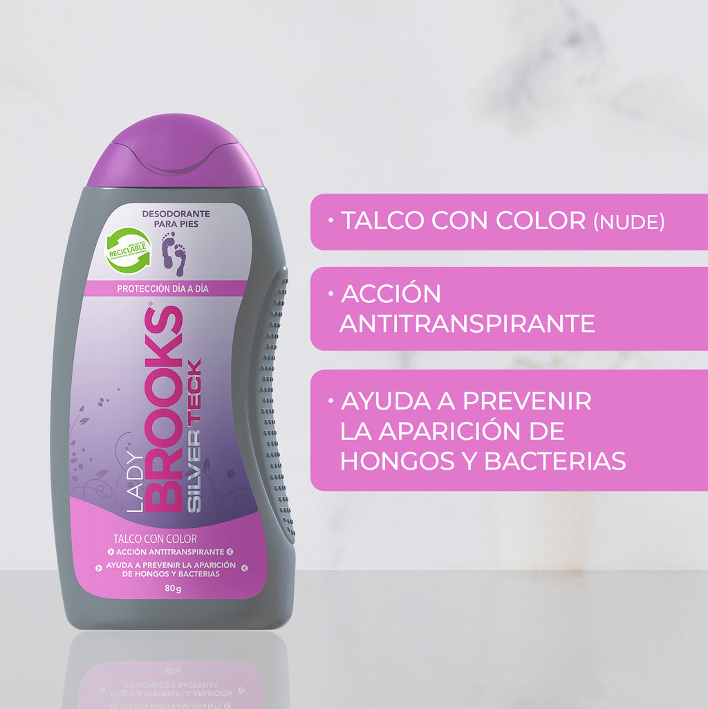 Combina frescura y cuidado intensivo para los pies. Incluye un desodorante en spray de 100gr de la línea Lady Brooks silverteck y una crema hidratante de 75 ml formulada con urea, ácido salicílico y vitamina E, que suaviza y regenera la piel.